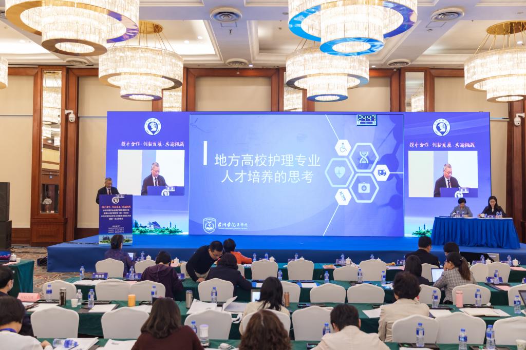 我院梁勇院长应邀在研讨会上做《地方性本科院校护理专业人才培养的思考》的演讲,回顾了我院护理学专业的办学历程,从遵循国家标准、加强教学改革着力点、改善教学条件三个方面介绍了学院提升护理教学质量的途径,同时展现了在修订护理学专业人才培养方案、学生自主学习能力培养、完善评价体系、教师教学能力提高、实践教学环境改良等方面做出的探索与努力。