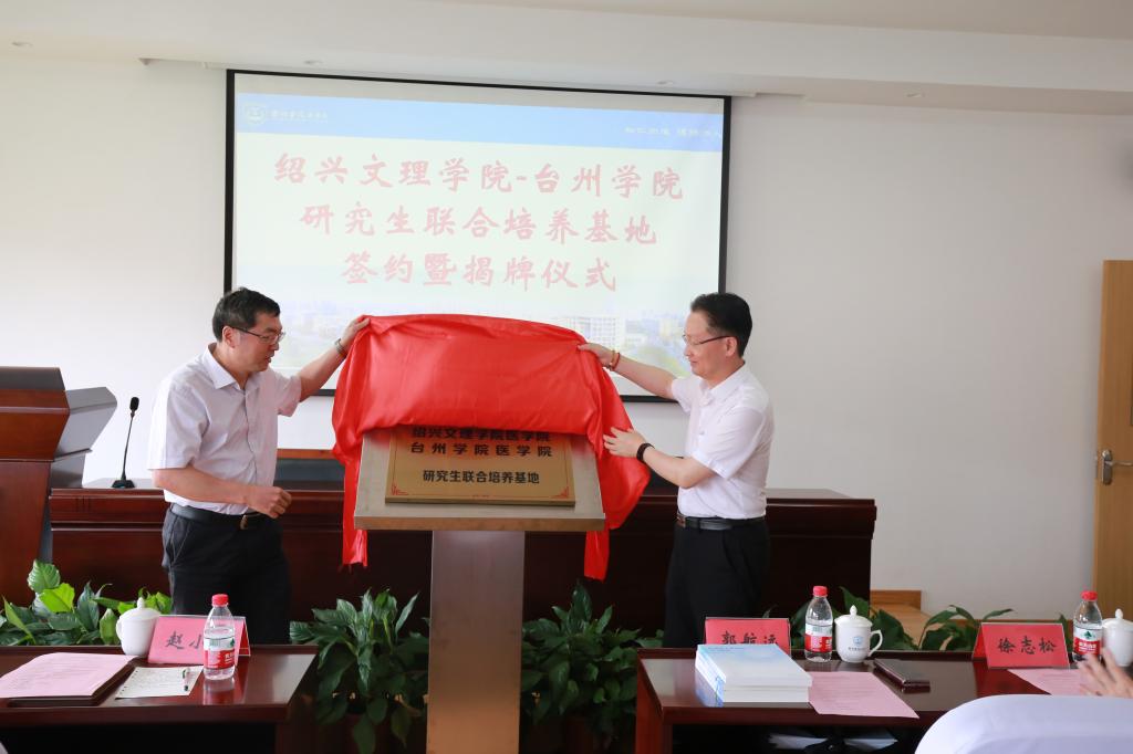 6月11日上午,“绍兴文理学院-tyc86太阳集团硕士研究生联合培养基地”签约暨授牌仪式在tyc86太阳集团学术会议室举行。绍兴文理学院党委委员、tyc86太阳集团院长郭航远等一行7人,tyc86太阳集团副校长赵小明、台州市中心医院(tyc86太阳集团附属医院)党委书记院长徐颖鹤、台州市中心医院(tyc86太阳集团附属医院)副院长徐云峰、tyc86太阳集团附属市立医院副院长蔡志毅、tyc86太阳集团领导班子出席了会议。校学科建设与研究生管理处代表、tyc86太阳集团部门负责人、系部主任、学科组长、中心医院市立医院科教处教育管理处负责人等参加了仪式。仪式由tyc86太阳集团李仲斐书记主持。